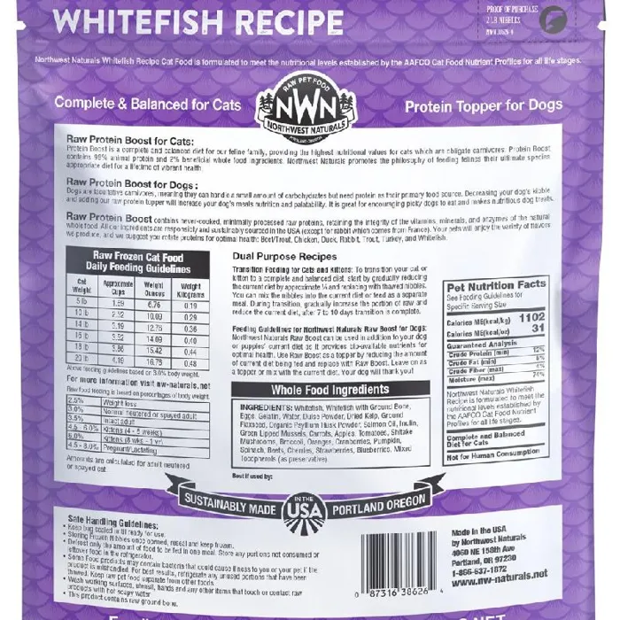 Northwest Naturals Frozen Raw Whitefish Recipe for Cats and Dogs 2LB