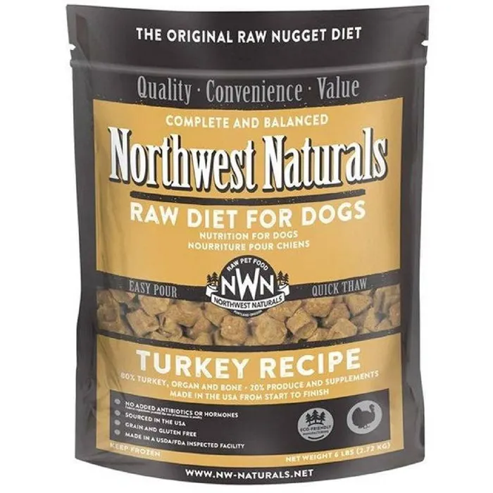 Northwest Naturals Turkey Recipe Raw Frozen Dog Food was developed with your pet's health, happiness and well-being in mind. This complete and balanced diet follows raw feeding principles, providing essential, species appropriate benefits to your pet that cooked food simply cannot offer!