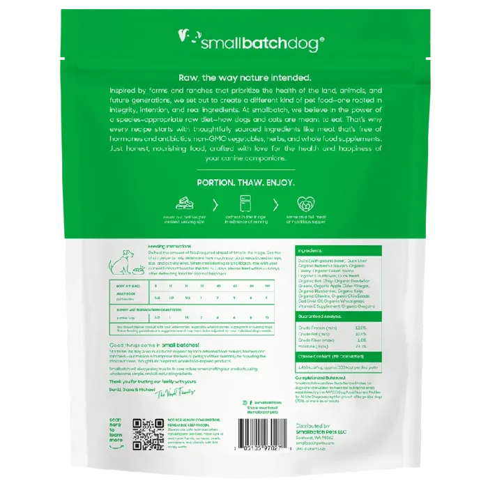 SmallBatch Frozen Raw Duck Patties for Dogs 6-lb