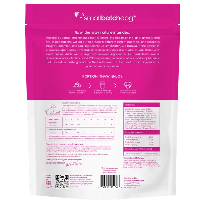SmallBatch Frozen Raw Rabbit Patties for Dogs 6-lb