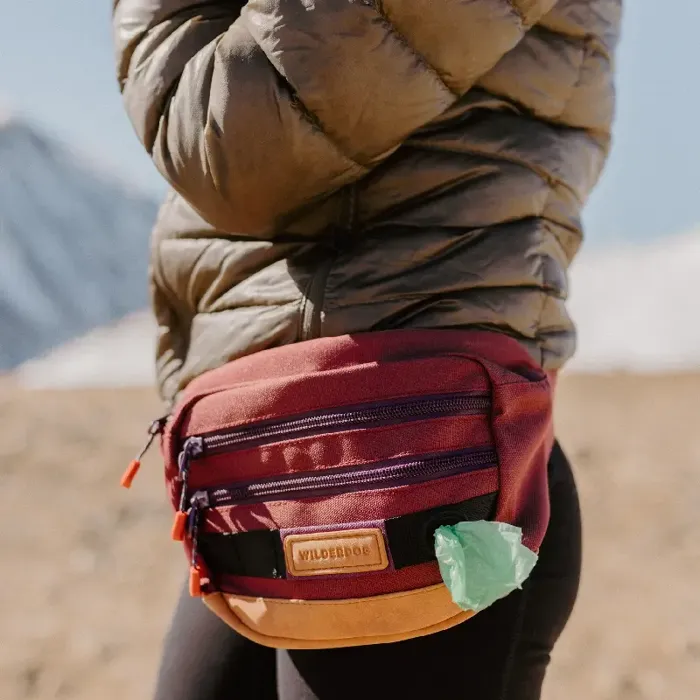 It's the ultimate fanny pack + treat bag combo with three separate compartments. While big enough to fit your phone, wallet, poop bags, and over a cup of treats, the Utility Pack is still small enough to comfortably sit on your waist! The rubber poop bag hole from the front pouch easily dispenses a roll of poop bags, while the black webbing is designed to be able to clip extra gear to the front.