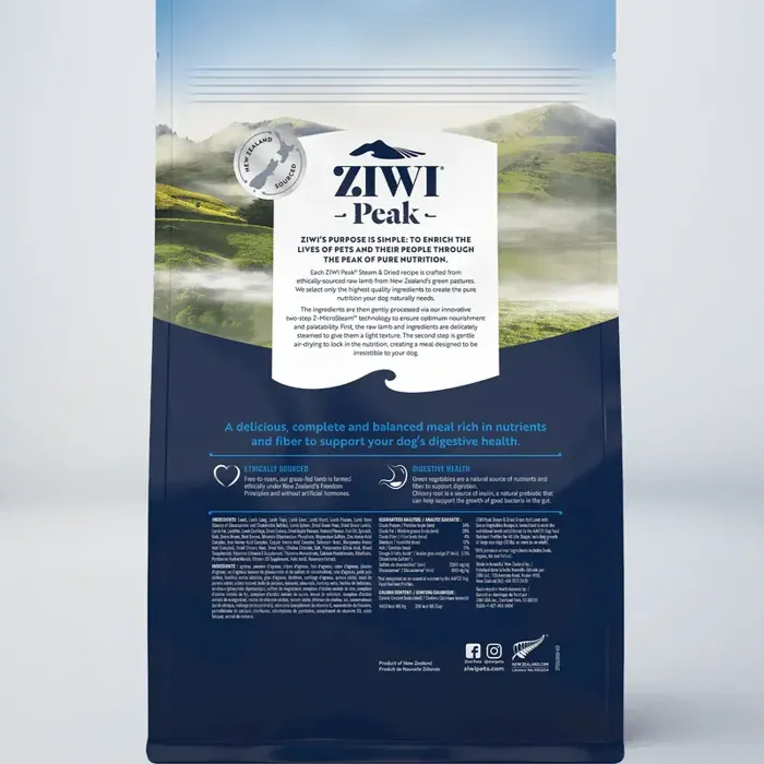 Ziwi Peak Steam Dried Grass-Fed Lamb With Green Vegetables Recipe for Dogs 1.8-lb