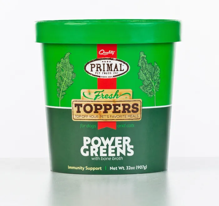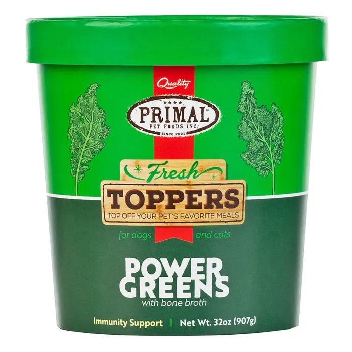 Primal Fresh Toppers Power Greens Whole Food Supplement for Dogs & Cats is a high-quality pet supplement that provides essential vitamins and nutrients to support the overall health and well-being of your furry friends. This whole food supplement is specifically formulated for dogs and cats and is packed with power greens to provide a natural boost of nutrition. With a size of 32 ounces, this supplement will last for a long time, ensuring that your pets receive the necessary nutrients they need. Give your pets the best with Primal Fresh Toppers Power Greens Whole Food Supplement.