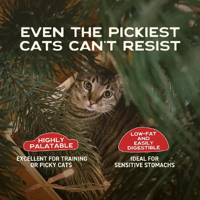 Single-ingredient treats! Naturally grain-free, low in fat, and easy to digest, itโs perfect for felines with sensitive stomachs or food sensitivities. Each bite delivers pure, lean protein to satisfy your catโs carnivorous instinctsโhandcrafted in small batches in the USA for fresh, healthy treating.